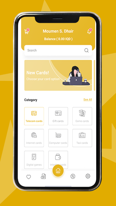Intishar app provides users with a wide range of different cards, including communication cards, internet cards, channels, computers, games, gift cards, and local credit cards of all kinds.